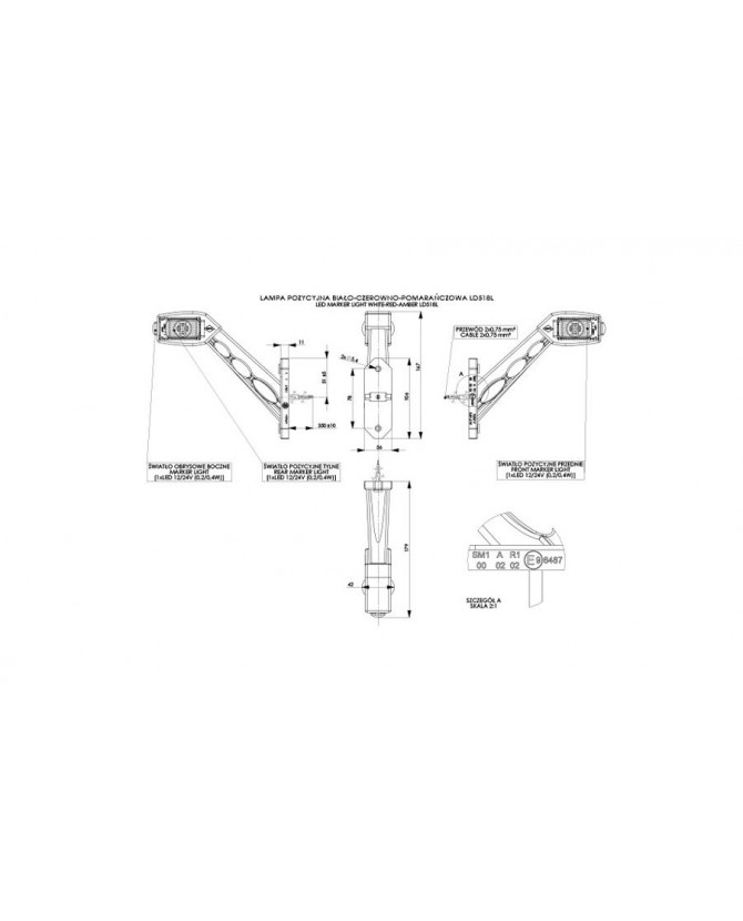 Farolim LED Delimitador Lateral 12V/24V - Braço Longo Dto. Ref.: LD518/P PEDIR PREÇO Tipo de lâmpada: LED - Out of stock